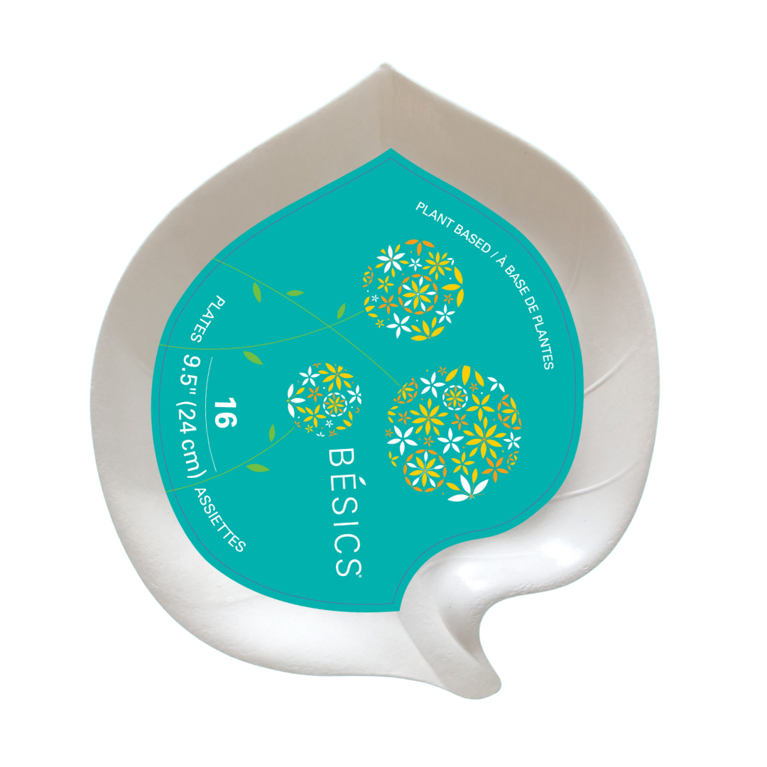 Our BÉSICS® Dinner Leaf plate's have a 9" diameter to support snacks and meals, whether it's burgers and fries or coleslaw and pie (unlikely but hey, it rhymes!) These plates are uniquely lined to allow for saucy celebration foods.